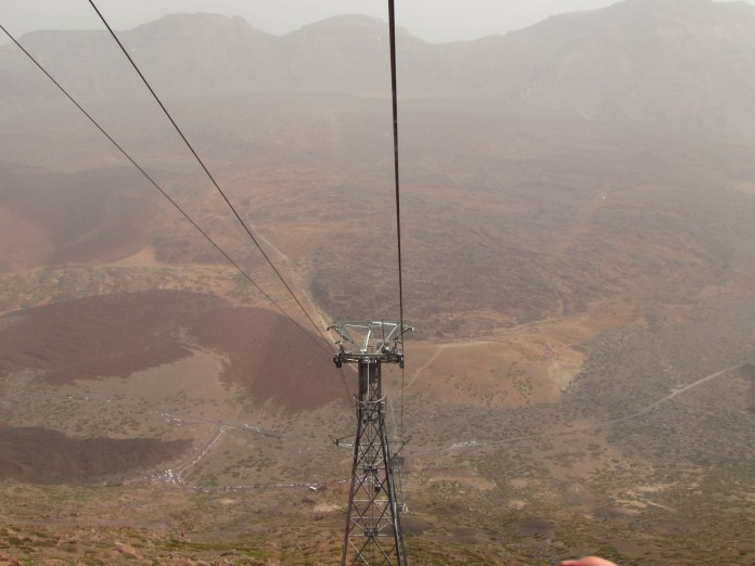 তেইদের রোপওয়ের সেই নিচের প্রান্তে তখনো গাড়ির ছড়াছড়ি। মেন কারপার্ক ছাড়াও চড়াই রাস্তার আশেপাশে পাথরের ওপর অনেক পার্কিংয়ের জায়গা, সব ভর্তি। ভাগ্যক্রমে একটা জায়গা খুঁজে পেয়ে গাড়িটা রেখে রওনা দিলাম টিকিট কাউন্টারের দিকে। গিয়ে দেখি রোপওয়ের কর্মচারী বলছে সোফিয়ার ওপরে যাওয়াটা নিরাপদ নয়। রোপওয়ের অপরের প্রান্ত ৩৫৪০মি উঁচুতে, সেখানে অক্সিজেন তুলনামূলক ভাবে অনেক কম। প্রাপ্তবয়স্ক মানুষের তেমন অসুবিধা না হলেও ছোট বাচ্চাদের শ্বাসকষ্ট শুরু হতে পারে। এই সব ভেবে জেনিফার রয়ে গেল সোফিয়ার সাথে নিচে, আমি টিকেট কেটে দাঁড়িয়ে পড়লাম রোপওয়ের লাইনে। কেবল কারের এই জায়গাটা থেকে তেইদের শিখর দেখা যায়না। সামনের ঢালটা এত খাড়া যে চূড়াটা তার পেছনে ঢাকা পড়ে আছে। রোপওয়ে বলতে এলাহী ব্যাপার। বিরাট বড় বড় টাওয়ার তার দুদিকে দুটো কেবল লাইন, একটা কার যখন নিচে, অন্যটা তখন ওপরে, দুটো একসাথে যাত্রা শুরু করে সব সময়, ২৫০০মি থেকে ৩৫৪০মি এই পুরো দূরত্ব যেতে সময় লাগে মোটে ৮ মিনিট। লাইনে বাঙালির অভ্যেসমত ঠেলেঠুলে একদম সামনে দাঁড়িয়ে পড়লাম কেবল কারের কাঁচে ঘেরা বাক্সর সামনে জায়গা করে নেবার জন্য। একটু দোল খেয়ে কার যখন চড়া শুরু করলো তখন বেশ উত্তেজনা বোধ করছিলাম, ৫০মি নাগাদ যাবার পর যখন সেটা পুরো গতিতে চলতে শুরু করলো হঠাৎ খেয়াল হলো মাটি থেকে প্রায় ৫ তলা উঁচুতে রোপওয়ে চলছে, দড়ি ছিঁড়ে গেলে সাথে সাথে ভবলীলা সাঙ্গ । তার ওপর প্রতিটা টাওয়ার ক্রস করার পর ফিজিক্সের নিয়ম মেনে কেবল লাইনটা খানিকটা নিচে নেমে আসে আবার ওপরের দিকে যাবার আগে, সেই সময়টা মনে হয় যেন কারটা নিচের দিকে পড়ে যাচ্ছে। যাহোক, রাস্তার মাঝামাঝি সেই খাড়া চড়াই শেষ হলো, সামনে দাঁড়ানোর সুফল এতক্ষণে পাওয়া গেল, সামনে তেইদের শৃঙ্গ সমস্ত জানলা জুড়ে। ঠিক ৮ মিনিটের মাথায় কার থামল ওপর প্রান্তে। পুয়ের্তো দে লা ক্রুজ ছাড়ার সময় তাপমাত্রা ছিল ২৮, এই ৩৬০০মি উঁচুতে সেটা দাঁড়িয়েছে ৮ ডিগ্রী। বাইরে বেরিয়ে তেইদের দিকে তাকিয়ে মনটা উদাস হয়ে গেল। উত্তরবঙ্গে কলেজে থাকার সময় পাহাড়ে যেত বন্ধুরা কিন্তু আমার সেরকম পাহাড় চড়ার অভিজ্ঞতা হয়নি। এতদিন বাদে সাত সমুদ্র তেরো নদী পেরিয়ে দাঁড়িয়ে রয়েছি স্পেনের শীর্ষতম শৃঙ্গের প্রায় চূড়ায়, মাঝের পনের বছরে জীবন বদলে গিয়েছে বেশ। আর সেই মুহুর্তে এখানেও আমি একেবারে একা, এই অসাধারণ অভিজ্ঞতা কেবল আমার মনেই রয়ে যাবে, খানকয় ছবি থাকবে বটে কিন্তু সেই শিহরণ জাগানো মুহুর্তটা ভাগ করে নেয়া যাবেনা আর কারো সাথে। এসব ভেবে তাড়াতাড়ি আবার নিচে ফেরত যাব ঠিক করে খানিকটা দেখে নিলাম যতটা সম্ভব। রোপওয়ের ঘরের বাইরে পাথর কেটে তৈরী করা রাস্তা দুদিকে চলে গেছে দুট