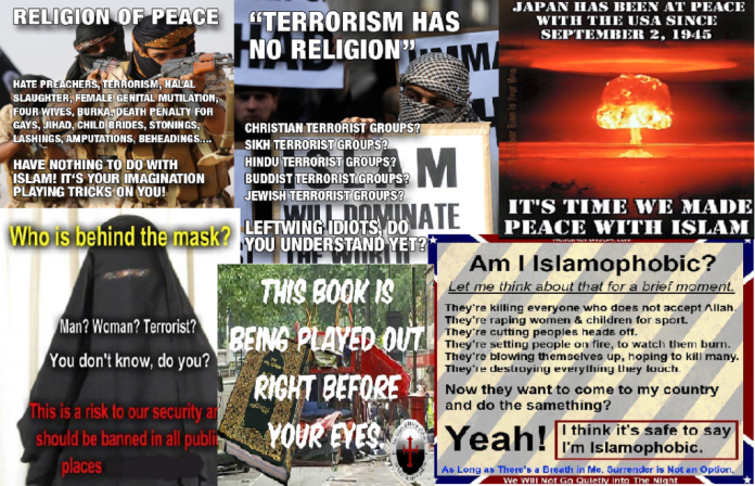 Quelques rubriques transmettant la haine contre Islam. Source: Facebook page officiel des groupes de fascistes