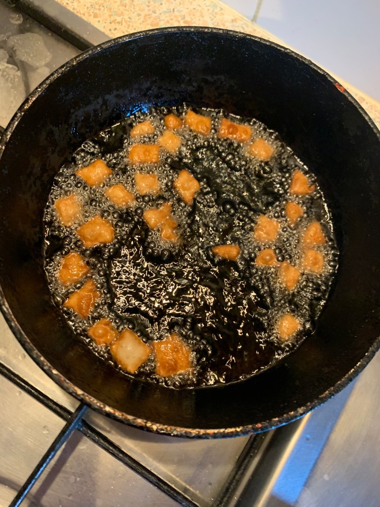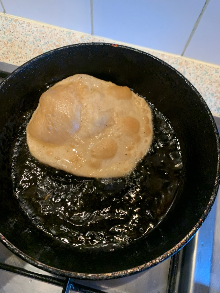 Coming to food, I started with leftover rice and kidney bean stew. My lunch was rice, lentil and chickpea stir-fry. I cooked 300g of my voucher rice and it was evident that I’ll probably finish the challenge with a 750g to spare. That gave me some incentive to experiment some of the recipes I noticed in the recipe book and in the posts. Last two days I craved nibbles, so I made a dough using 150g flour and spices, cut them in tiny chunks to deep fry them followed by coating with a seasoning of ground roasted cumin. Some of them are a bit soft, but the rest taste nice, like the packed pretzel bites you can buy. Now I have my crisps substitute. There were quite a bit of dough left so I made two fried breads. Dinner was sumptuous- rice, fried bread, kidney bean curry and chickpeas stir fry.