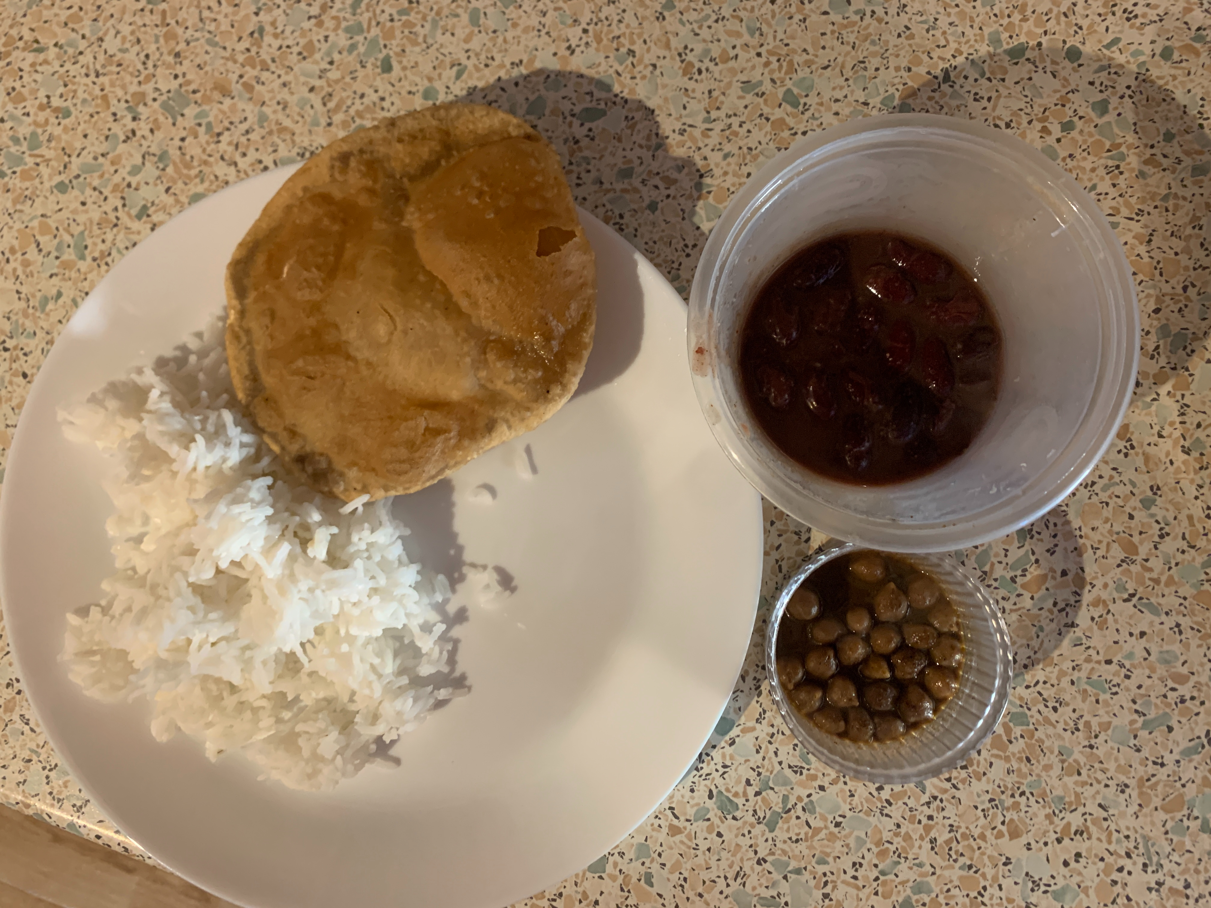 Dinner Day-3: Rice, fried bread, chickpeas and kidney beans